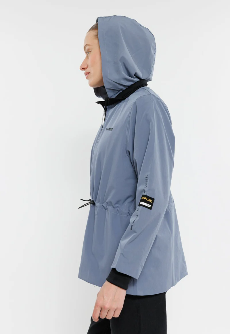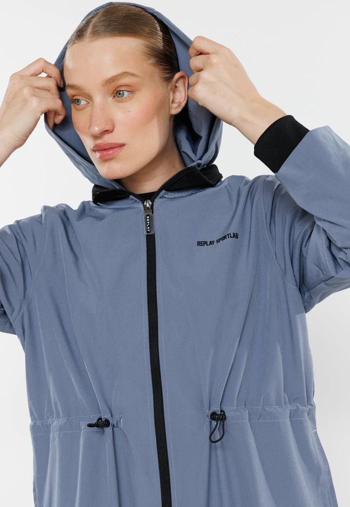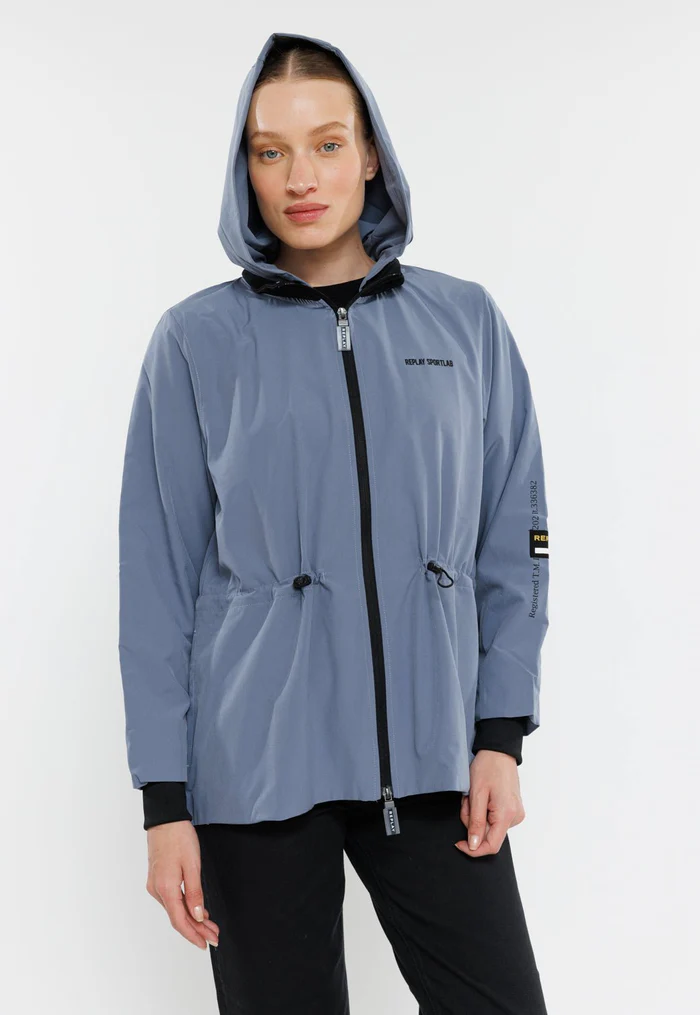 קפוצ’ון רוכסן ניילון ארוך לוגו ריפלייוחגורת גומי נשים